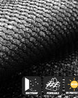 - Material: 100% new 150 GSM high density polyethylene (HDPE) fabric; Anti-corrosion Aluminum Grommets.